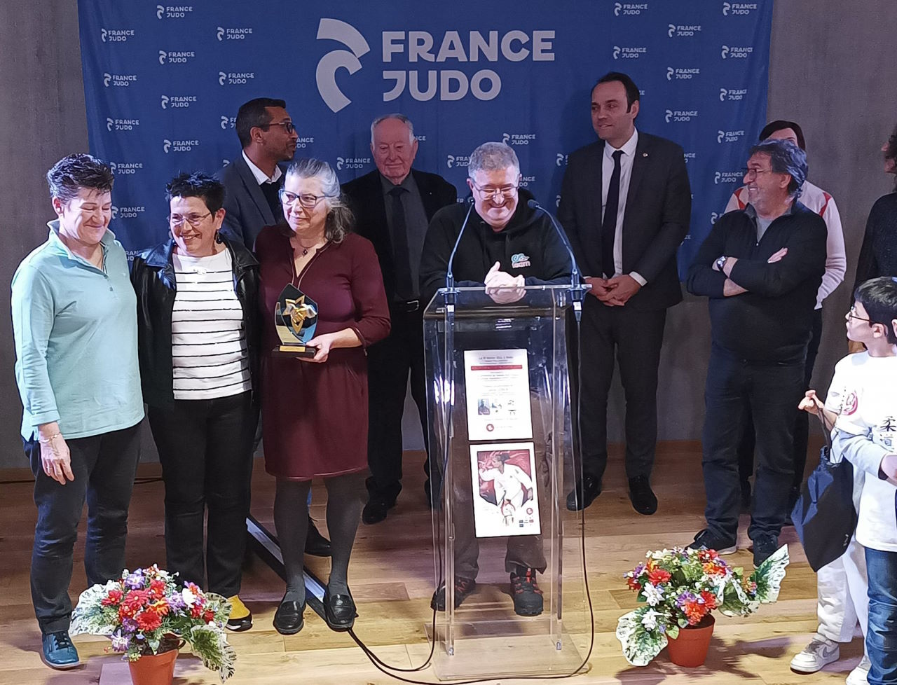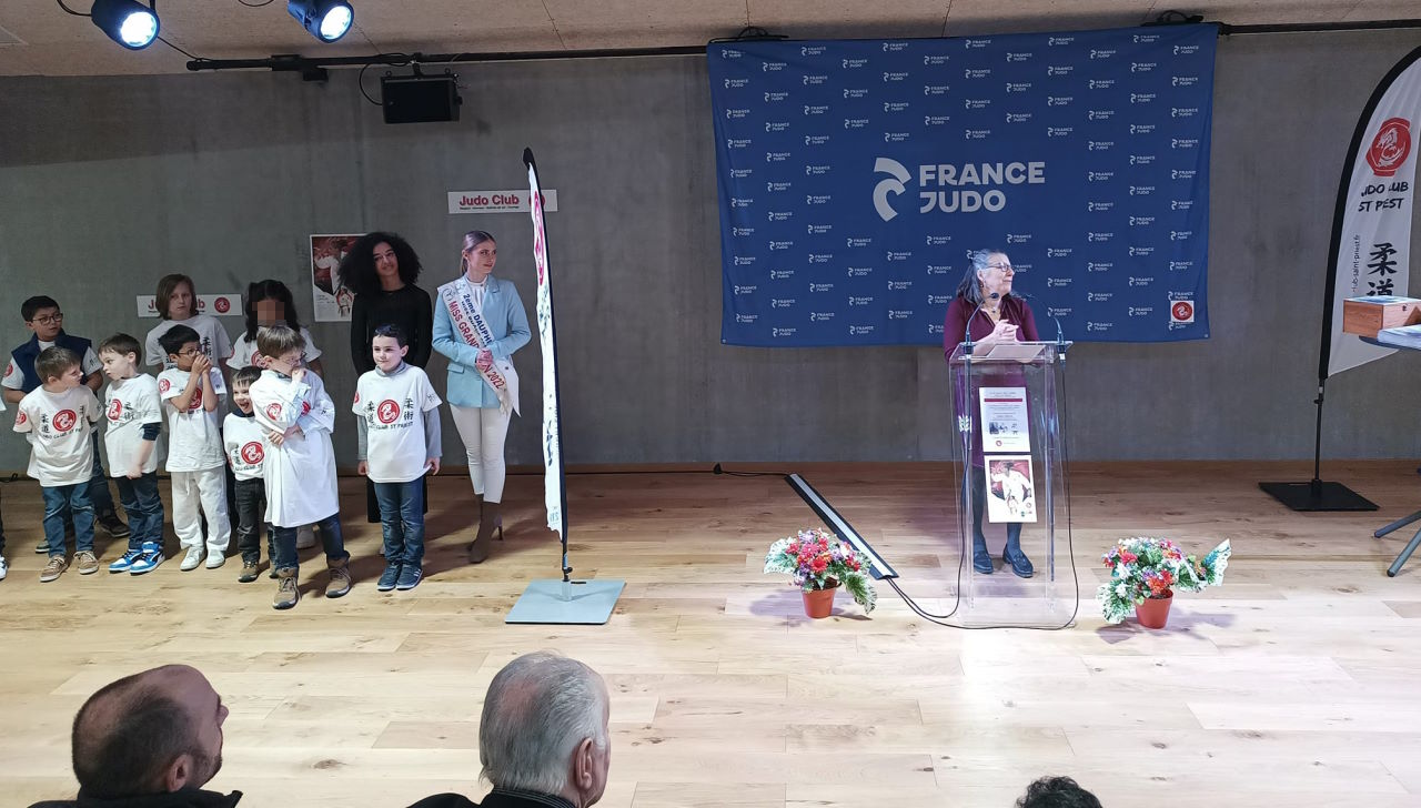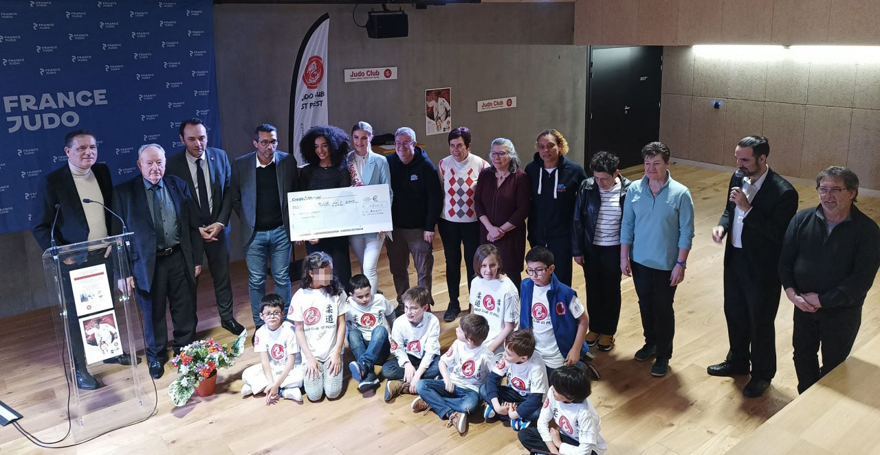 La cérémonie de remise du chèque s'est déroulée samedi 10 février 2024 au théâtre Théo Argence de Saint Priest en présence entre autres de Messieurs Gilles GASCON (maire de Saint Priest), Jérémie BREAUD (maire de Bron), Sylvain GAS (président d' Espoir Cancer) et de Mesdames Doriane CORSALE (1ère adjointe à la mairie de Saint Priest) Claude PAYET (présidente du judo club) et surtout de Céline LEBRUN notre championne de judo marraine du calendrier.